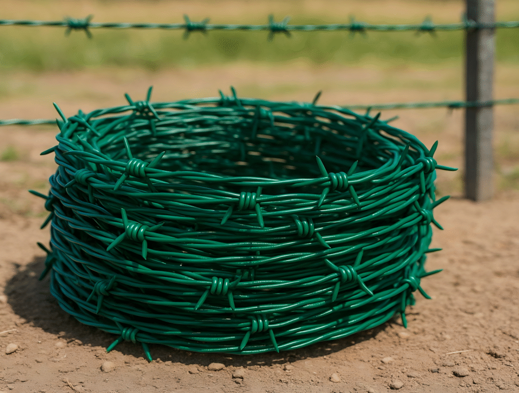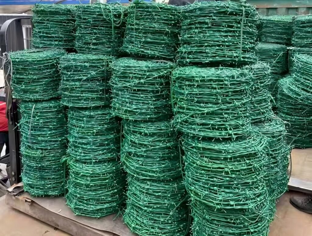 A variety of colors like green, blue, yellow, orange, gray, is available with PVC Coated Barbed Iron Wire produced by us.